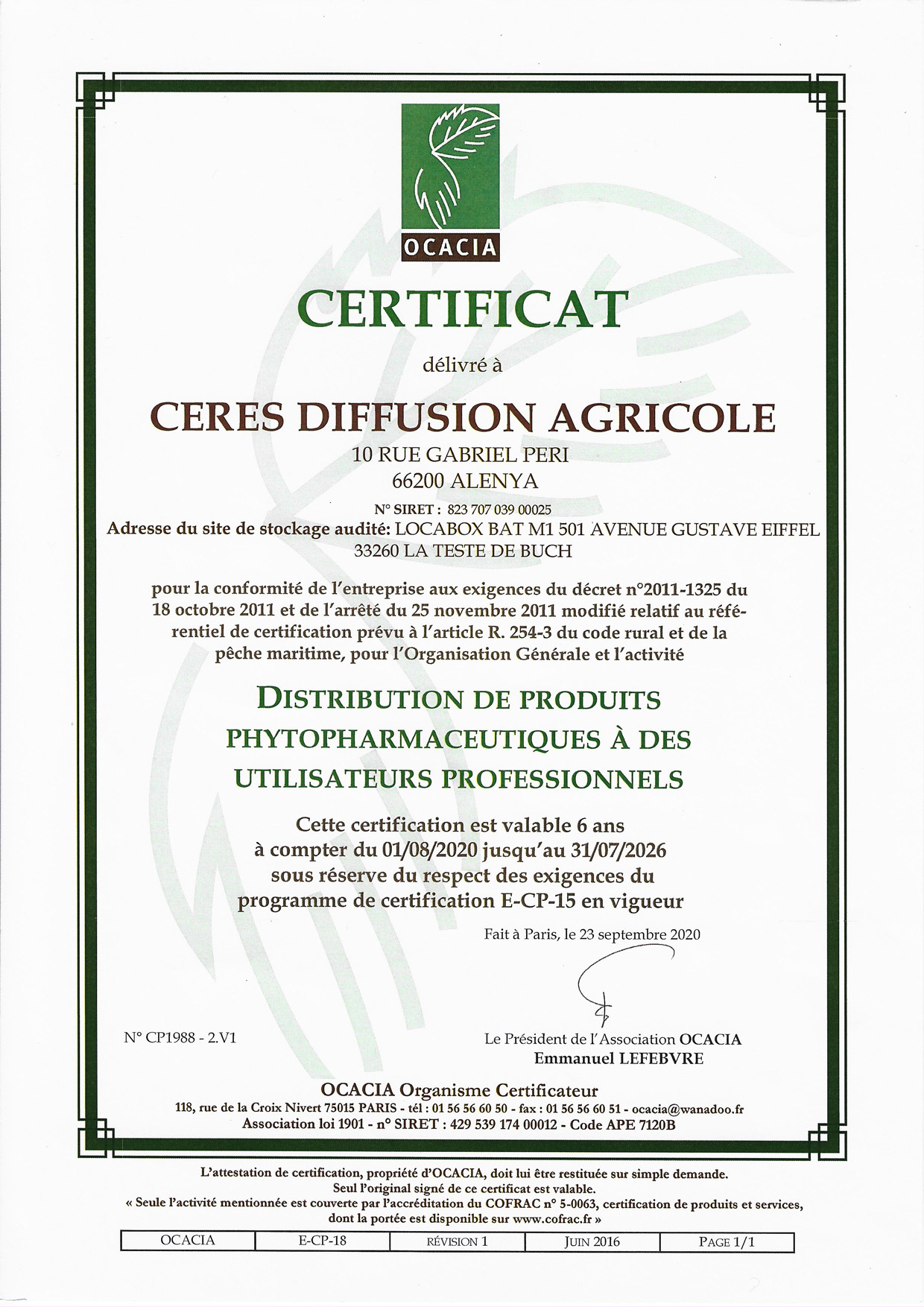 Notre société est certifiée par OCACIA N°Agrément 6600006